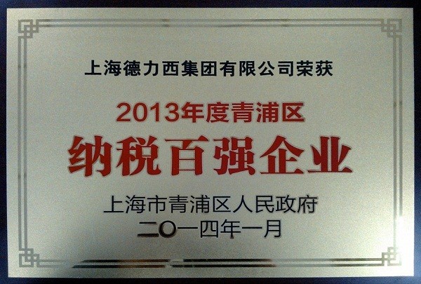 2014 年1 月24 日,2013年度青浦區(qū)納稅百強企業(yè)表彰會在青浦工業(yè)園區(qū)隆重舉行。青浦區(qū)委書記高亢,區(qū)委副書記、區(qū)長趙惠琴等領導出席表彰會。上海德力西集團被授予“2013 年度上海市青浦區(qū)納稅百強企業(yè)”榮譽稱號。上海德力西集團監(jiān)事會副主席林少東出席大會領獎。